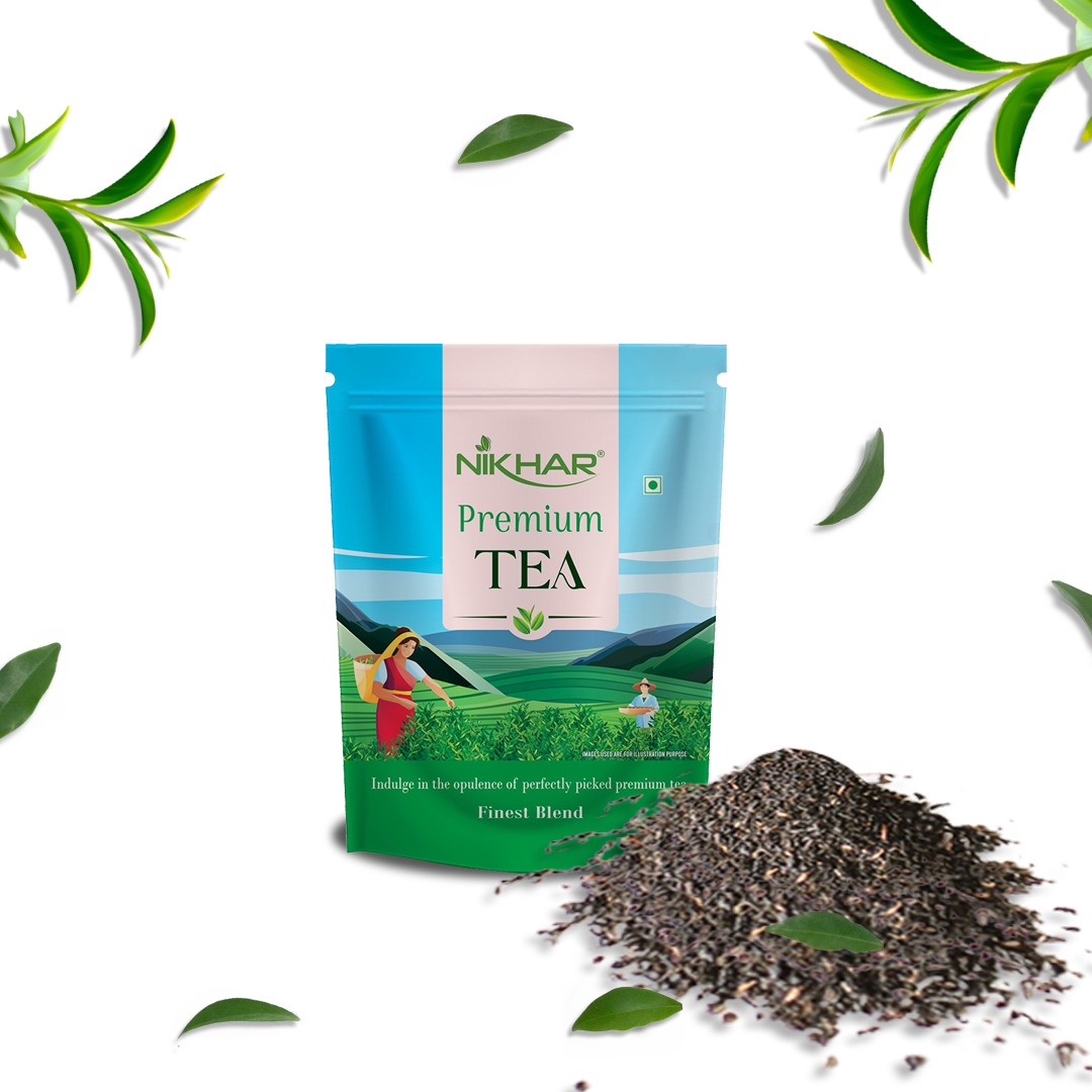 Nikhar Premium Assam Blended Tea is our signature blend combining the finest Assam tea leaves. This 250g pack offers a perfect balance of strength and smoothness. The premium blend is carefully selected to provide rich aroma, excellent color, and refreshing taste. Ideal for those who appreciate quality in their daily cup of chai.