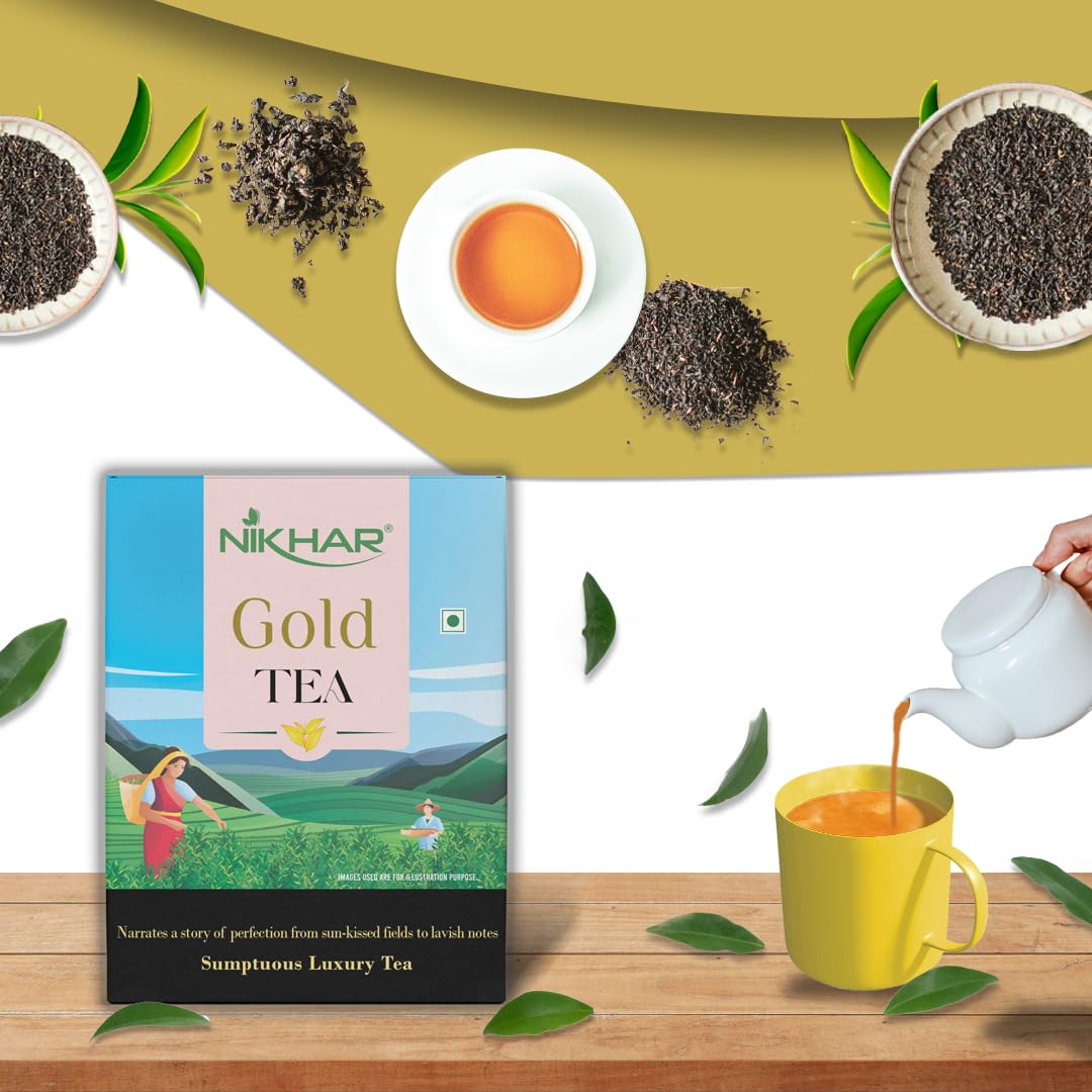 Nikhar Gold Label represents our finest tea selection. This 250g premium pack contains only the top-grade Assam tea leaves, handpicked during peak season. The Gold Label blend offers exceptional aroma, perfect color, and a smooth, refined taste. Ideal for connoisseurs who demand the very best in their teacup.